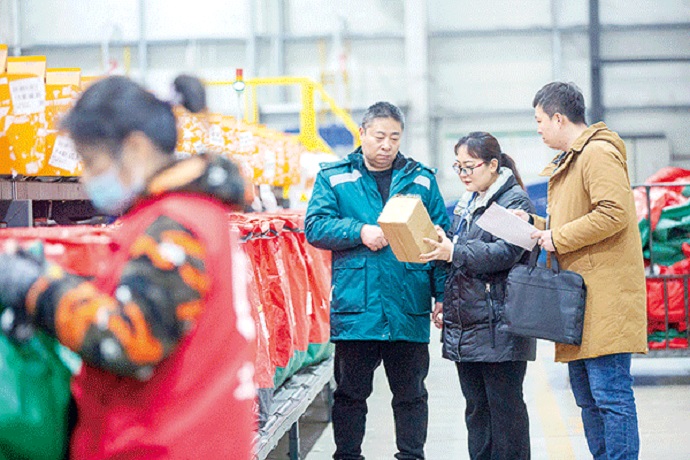 河南省漯河市郾城區(qū)紀(jì)委監(jiān)委緊盯“四風(fēng)”新動向、新表現(xiàn),嚴(yán)查快遞送禮等隱形變異行為。圖為該區(qū)紀(jì)檢監(jiān)察干部在轄區(qū)物流園區(qū)核實(shí)相關(guān)問題線索。王曉 攝