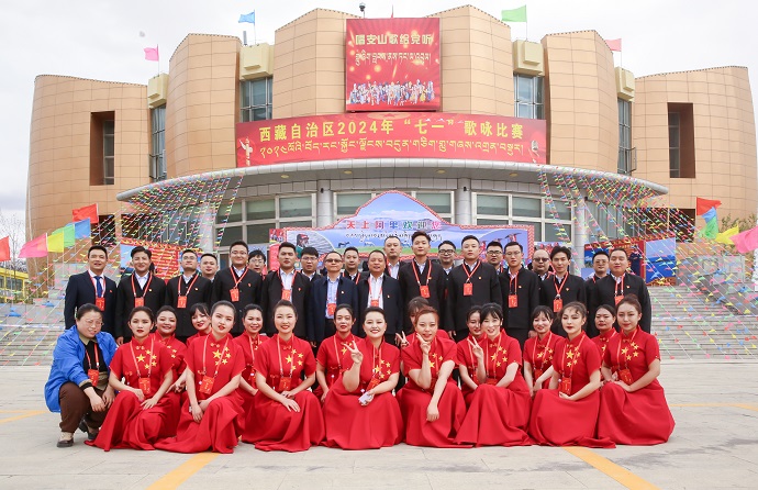 6月28日晚,西藏阿里群眾文化藝術(shù)館人潮涌動,歌聲飛揚(yáng)。由自治區(qū)黨委宣傳部主辦的“西藏自治區(qū)2024年迎‘七一’暨‘唱支山歌給黨聽’紅色歌曲歌詠比賽決賽正式拉開帷幕,共有來自全區(qū)不同單位行業(yè)的15支代表隊伍同臺競技,共同獻(xiàn)禮黨的百年華誕。當(dāng)晚21時,開幕式準(zhǔn)時開始。在多彩燈光的映襯下,象雄古韻·天上阿里的原生態(tài)和《再唱山歌給黨聽》《沒有共產(chǎn)黨就沒有新中國》《我和我的祖國》等一曲曲耳熟能詳?shù)募t色歌曲交相輝映、相繼登場,將全區(qū)各族兒女和廣大黨員干部職工愛黨愛國愛藏的情懷淋漓盡致展現(xiàn)。