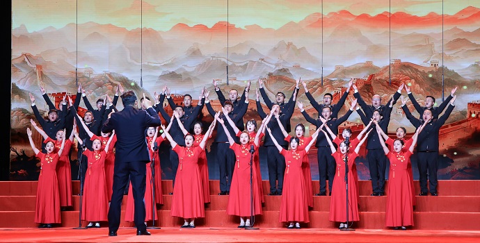 當(dāng)晚的現(xiàn)場,集團(tuán)公司合唱隊的演唱充滿了激情與力量,以激昂的節(jié)奏和磅礴的氣勢,深情謳歌了黨的豐功偉績,唱出了家國情懷,將對偉大祖國的深情祝福和前進(jìn)道路上的奮斗精神融入歌聲之中,展現(xiàn)了國企職工不忘初心、闊步前行的昂揚(yáng)姿態(tài),贏得了臺下觀眾熱烈的掌聲與贊譽(yù)。