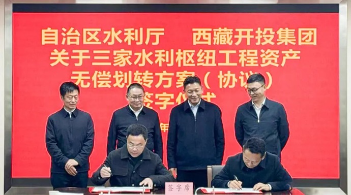 12月11日,自治區(qū)水利廳與西藏開(kāi)投集團(tuán)在拉薩簽署旁多、滿(mǎn)拉、拉洛三大水利樞紐工程資產(chǎn)無(wú)償劃轉(zhuǎn)協(xié)議,標(biāo)志著西藏國(guó)有企業(yè)改革邁出堅(jiān)實(shí)步伐。自治區(qū)水利廳黨組副書(shū)記、廳長(zhǎng)和忠華,區(qū)政府國(guó)資委黨委委員、副主任于雷,西藏開(kāi)投集團(tuán)黨委書(shū)記、董事長(zhǎng)祁騰武出席簽字儀式并講話。自治區(qū)水利廳黨組成員、副廳長(zhǎng)趙輝與西藏開(kāi)投集團(tuán)黨委委員、副總經(jīng)理尼瑪代表雙方簽署協(xié)議。集團(tuán)領(lǐng)導(dǎo)羅布次仁、陳焱罡出席儀式。