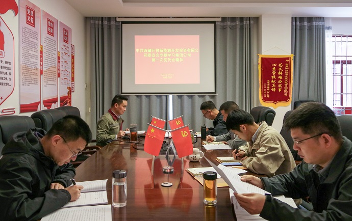 會(huì)議要求,一要深刻認(rèn)識(shí)集團(tuán)公司第一次黨代會(huì)的重大意義和豐富內(nèi)涵,把學(xué)習(xí)好、宣傳好、貫徹好黨代會(huì)精神作為當(dāng)前一段時(shí)間最大的政治任務(wù),迅速在新能源公司上下掀起學(xué)習(xí)黨代會(huì)精神的熱潮。通過黨委理論學(xué)習(xí)中心組集中學(xué)習(xí)、支部會(huì)議、研討會(huì)等多種方式,堅(jiān)持集中學(xué)習(xí)和個(gè)人自學(xué),通讀報(bào)告與專題研討相結(jié)合,確保學(xué)習(xí)宣傳貫徹取得實(shí)實(shí)在在的效果。二要將學(xué)習(xí)集團(tuán)公司第一次黨代會(huì)精神與改進(jìn)作風(fēng)狠抓落實(shí)工作結(jié)合起來,與按期推動(dòng)吉塘一期20萬千瓦光伏項(xiàng)目結(jié)合起來,并以此為主線,所有工作都要往這條主線聚焦。從黨委到各黨支部、各部門逐級(jí)有序深入組織學(xué)習(xí)宣傳貫徹黨代會(huì)精神活動(dòng),確保學(xué)習(xí)貫徹黨代會(huì)精神實(shí)現(xiàn)全覆蓋,確保學(xué)習(xí)一個(gè)不少,人人參與。三要把新能源公司各項(xiàng)工作融于集團(tuán)公司發(fā)展戰(zhàn)略全局考慮,聚焦“四件大事”“四個(gè)確保”,聚力“四個(gè)創(chuàng)建”“四個(gè)走在前列”,切實(shí)把集團(tuán)公司第一次黨代會(huì)精神落實(shí)到新能源公司主責(zé)主業(yè)和今年各項(xiàng)工作目標(biāo)及明年工作超前謀劃之中,推動(dòng)學(xué)習(xí)貫徹往實(shí)里走、往深里走,為助力集團(tuán)公司高質(zhì)量發(fā)展凝聚磅礴力量,在集團(tuán)公司“二次創(chuàng)業(yè)”中以實(shí)績展現(xiàn)新能源公司新?lián)?dāng)、新作為、新形象。