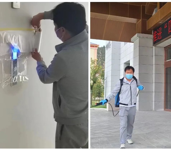 此次疫情發(fā)展伊始,酒店周邊已多處發(fā)生感染病例,距最近的高風險區(qū)域不到100米。孫海崗帶領部門人員,沖在“疫”線,堅持每天對酒店各個區(qū)域進行2次消殺,不留死角。由于酒店占地面積大,單體建筑分布較廣,完成一次全面徹底消殺用時需要2小時以上。孫海崗深知消殺工作的重要性,在工作過程中任勞任怨,埋頭苦干。