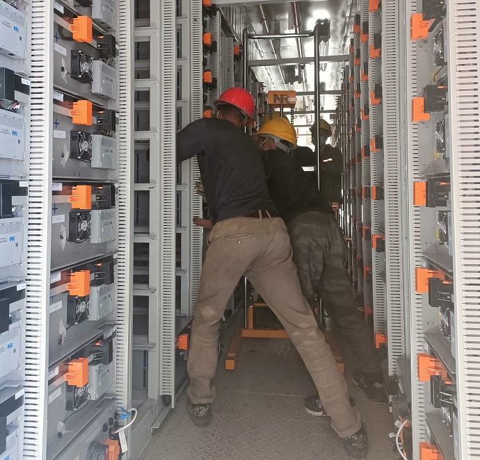 抓疫情防控是硬任務,抓儲能建設亦是硬道理。9月3日,為保障儲能設備按期到廠,八宿光伏電站主動對接廠家,掌握設備運輸車輛軌跡,積極聯(lián)系各地防疫部門開具證明。自儲能項目開工以來,安排專人蹲守現(xiàn)場監(jiān)督儲能建設,9月9日設備及配件陸續(xù)到廠后,及時成立驗收組對設備及配件進行到廠驗收。9月17日第一批電池艙到廠后,八宿光伏電站開啟“白+黑”工作模式,完成設備吊裝,具備單體調(diào)試條件。目前八宿光伏電站土建施工、一體機吊裝已全部完成,預計9月底具備涉網(wǎng)試驗條件。