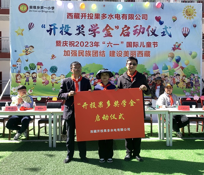 活動現場舉行了“開投果多獎學金”啟動儀式及凈水設備捐贈儀式。果多水電公司董事長、總經理宋亞東表示,“開投果多獎學金”的設立,旨在獎勵品學兼優(yōu)的學生,鼓勵大家努力學習,奮發(fā)向上,努力成長為國家的棟梁之材。柴維鄉(xiāng)小學校長代表全校師生對果多水電公司融入地方經濟社會發(fā)展、支持教育事業(yè)、積極承擔社會責任的善舉表示衷心的感謝,并希望同學們將善舉轉化為學習、前進的強大動力,努力學習,勵志成才,以優(yōu)異的成績回報社會,努力成為對社會有用的人才。