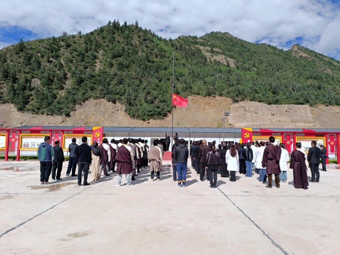 7月1日,果多水電公司黨支部應柴維鄉(xiāng)人民政府黨委邀請,參加柴維鄉(xiāng)黨委政府組織的“慶祝中國共產黨成立102周年暨‘七·一’建黨日”活動,活動在莊嚴的升旗儀式中拉開序幕,全鄉(xiāng)各村居、企事業(yè)單位在場人員全體肅立,伴著莊嚴神圣的國歌,五星紅旗冉冉升起。