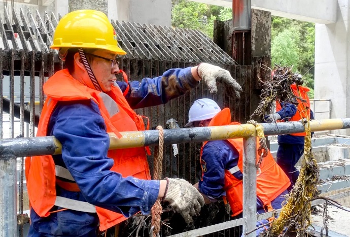 5月31日,金橋水電公司聞“汛”而動(dòng),迅速投入到攔污柵清污工作中。大家分工合作,相互配合,通過(guò)采取多種方法,經(jīng)過(guò)6個(gè)小時(shí)的辛勤勞作,清除了兩孔攔污柵全部堵塞物,確保了進(jìn)水口攔污柵“零”壓差,保障了金橋水電站的正常運(yùn)行和發(fā)電安全,同時(shí)也為2024年公司安全度汛奠定了基礎(chǔ)。