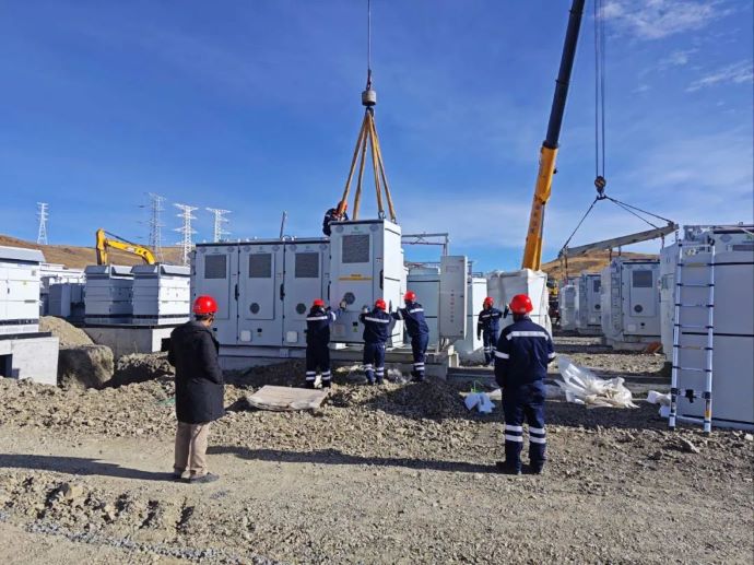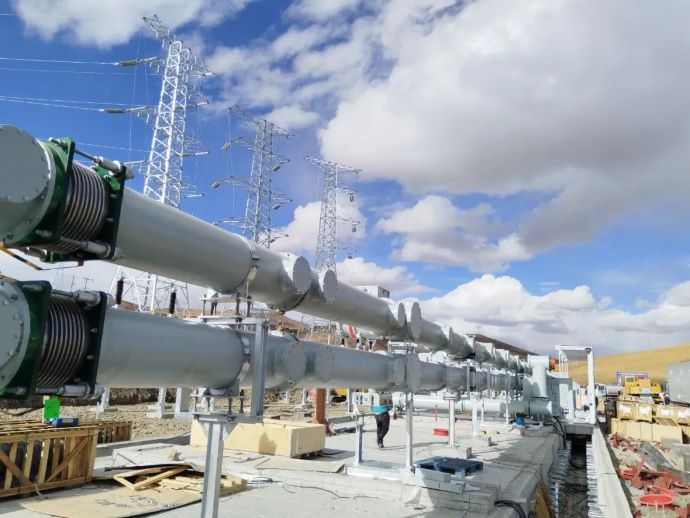 西藏開投色尼區(qū)達(dá)嘎普獨(dú)立構(gòu)網(wǎng)型儲能電站GIS安裝。(圖由中國電建集團(tuán)華東院提供)