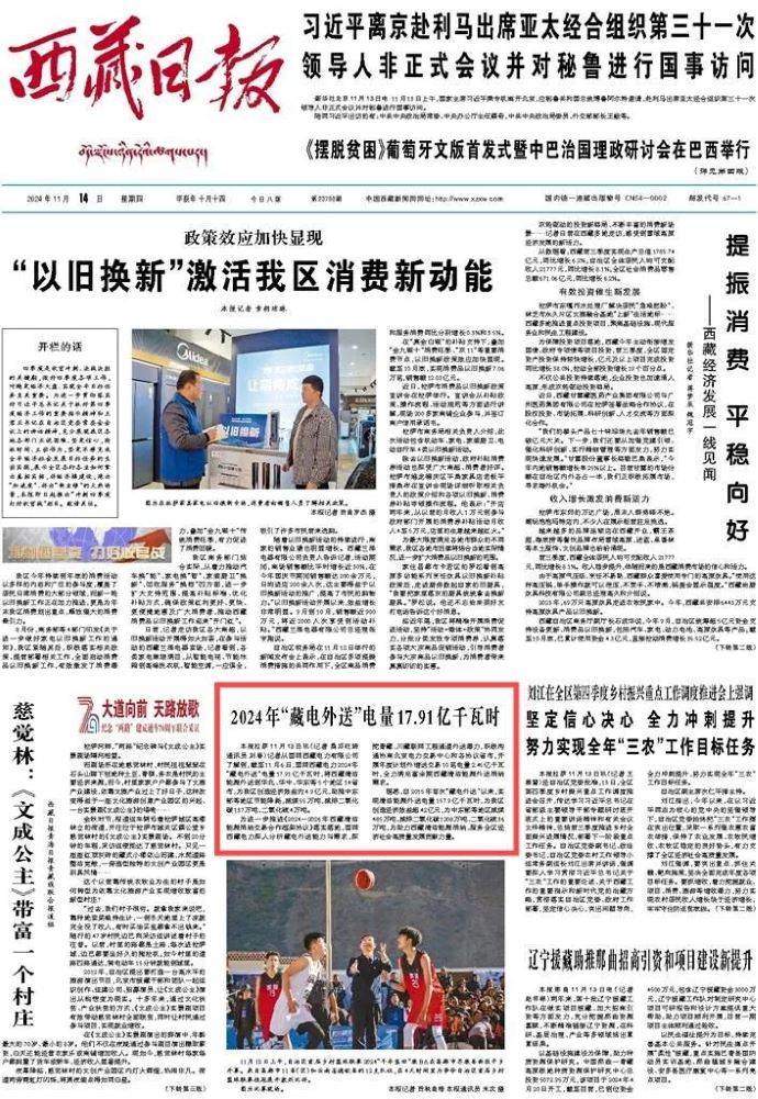 西藏日報(bào)丨2024年“藏電外送”電量17.91億千瓦