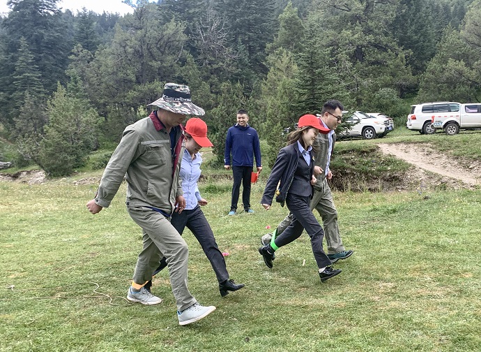 座談結(jié)束后,全體黨員面向黨旗莊嚴(yán)宣誓,重溫入黨誓詞,激勵(lì)永葆入黨初心。最后,兩支部開展了以“重溫紅色”為主題的戶外團(tuán)建活動(dòng),通過(guò)重走長(zhǎng)征路、黨建知識(shí)問答、紅色詞匯你比我猜、兩人三足等活動(dòng)進(jìn)一步增進(jìn)支部交流互動(dòng)?;顒?dòng)現(xiàn)場(chǎng),參賽隊(duì)員充分發(fā)揚(yáng)團(tuán)隊(duì)精神,積極參與,精誠(chéng)合作,加油聲、吶喊聲、歡呼聲此起彼伏。