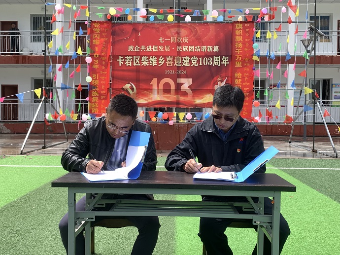 活動(dòng)上,觀看了文藝表演,參加了“黨史、黨紀(jì)、普法”知識(shí)問(wèn)答,向“光榮在黨50年”的老黨員頒發(fā)紀(jì)念章及慰問(wèn)金,與柴維鄉(xiāng)人民政府簽訂了《2024年卡若區(qū)柴維鄉(xiāng)人民政府與西藏開(kāi)投果多水電有限公司政企聯(lián)動(dòng)促團(tuán)結(jié)共發(fā)展協(xié)議書(shū)》。果多水電公司黨支部書(shū)記、董事長(zhǎng)、總經(jīng)理宋亞?wèn)|表示,果多水電公司將秉持“建設(shè)一座電站、帶動(dòng)一方經(jīng)濟(jì)、保護(hù)一片環(huán)境、造福一方百姓、共建一方和諧”的理念,進(jìn)一步強(qiáng)化內(nèi)部管理,保障安全生產(chǎn)運(yùn)行,不斷提升企業(yè)效益,積極履行社會(huì)責(zé)任,集聚資源惠及群眾,深化地企合作共贏發(fā)展,為建設(shè)團(tuán)結(jié)富裕文明和諧美麗的社會(huì)主義現(xiàn)代化新西藏做出更大貢獻(xiàn)。