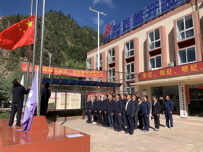 7月1日,迎著和煦的朝陽(yáng),果多水電公司全體人員在辦公樓前整齊列隊(duì)。隨著一聲洪亮的指令,升旗儀式正式開(kāi)始,伴隨著高亢激昂的國(guó)歌聲,鮮艷的五星紅旗冉冉升起,迎風(fēng)飄揚(yáng),全體人員面向國(guó)旗行注目禮。大家心潮澎湃、豪情滿懷,共同慶祝中國(guó)共產(chǎn)黨成立103周年,共同表達(dá)對(duì)黨、對(duì)祖國(guó)的忠誠(chéng)和熱愛(ài)。