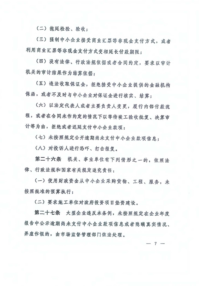 保障中小企業(yè)款項支付條例