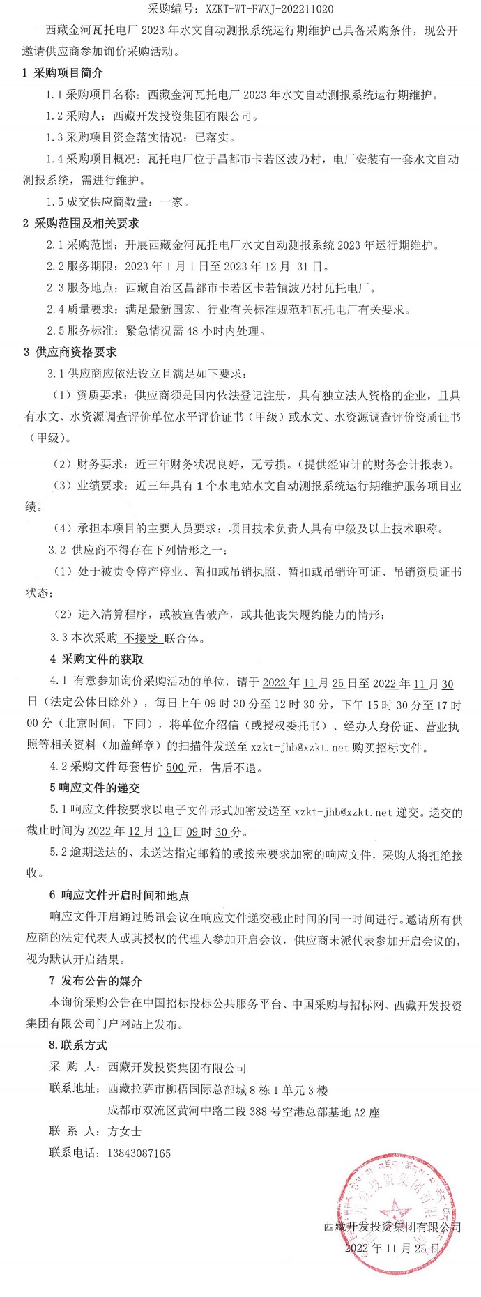 西藏金河瓦托電廠2023年水文自動(dòng)測(cè)報(bào)系統(tǒng)運(yùn)行期