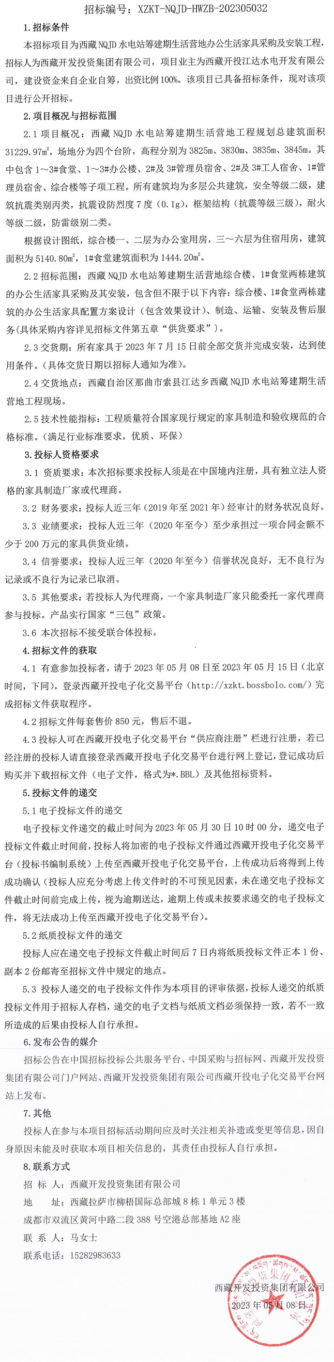西藏NQJD水電站籌建期生活營(yíng)地辦公生活家具采購及安裝工程招標(biāo)公告