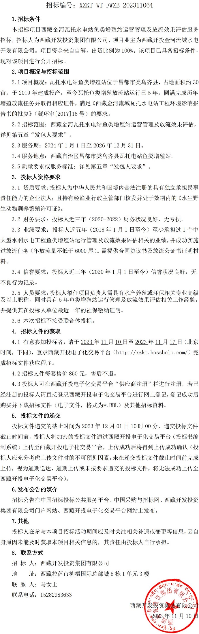 西藏金河瓦托水電站魚(yú)類(lèi)增殖站運(yùn)營(yíng)管理及放流效果評(píng)估服務(wù)招標(biāo)公告