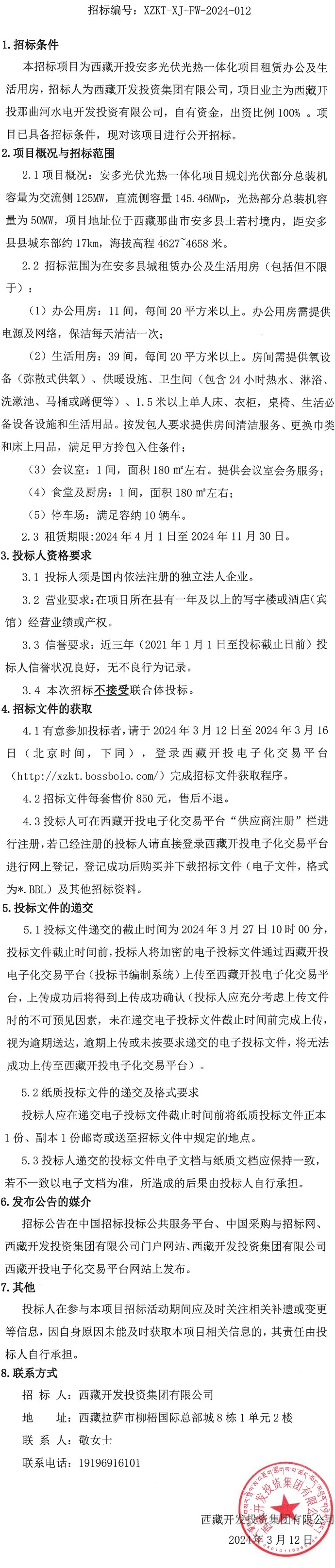 西藏開投安多光伏光熱一體化項目租賃辦公及生活用房招標(biāo)公告