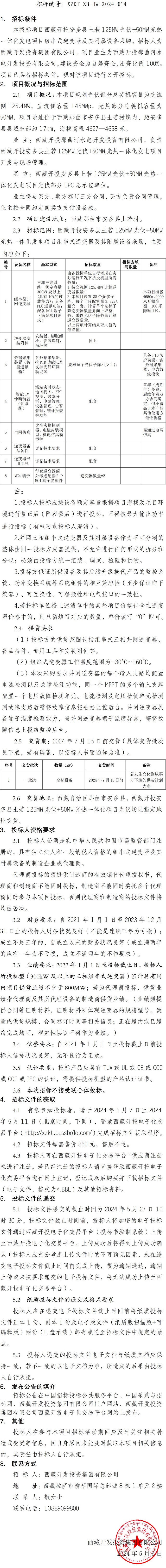 西藏開投安多縣土若 125MW光伏+50MW光熱一體化發(fā)電項目組串式逆變器及其附屬設(shè)備采購招標(biāo)公告