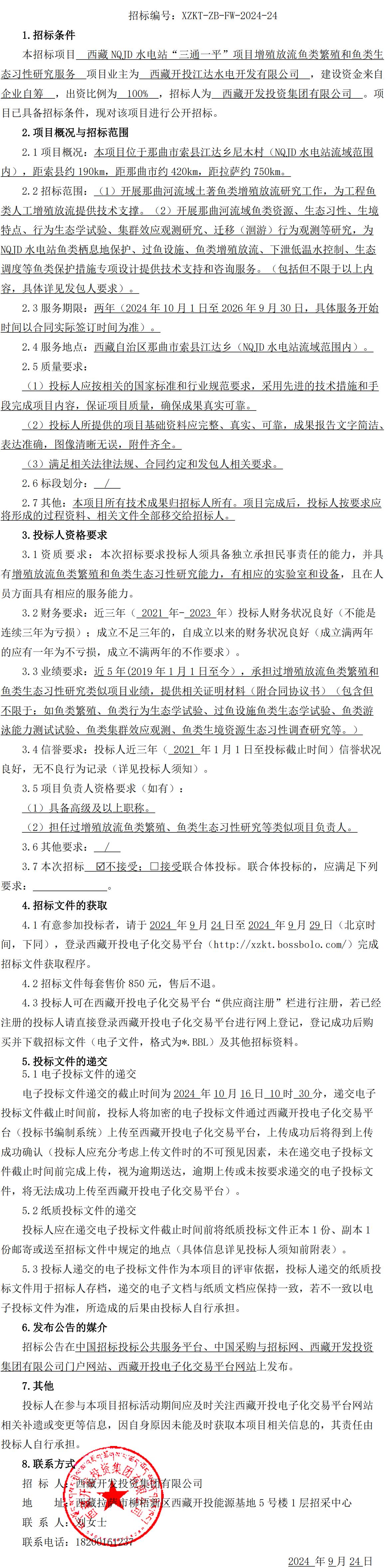 西藏 NQJD 水電站“三通一平”項(xiàng)目增殖放流魚類繁殖和魚類生態(tài)習(xí)性研究服務(wù)招標(biāo)公告