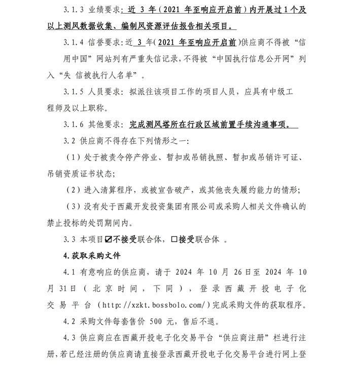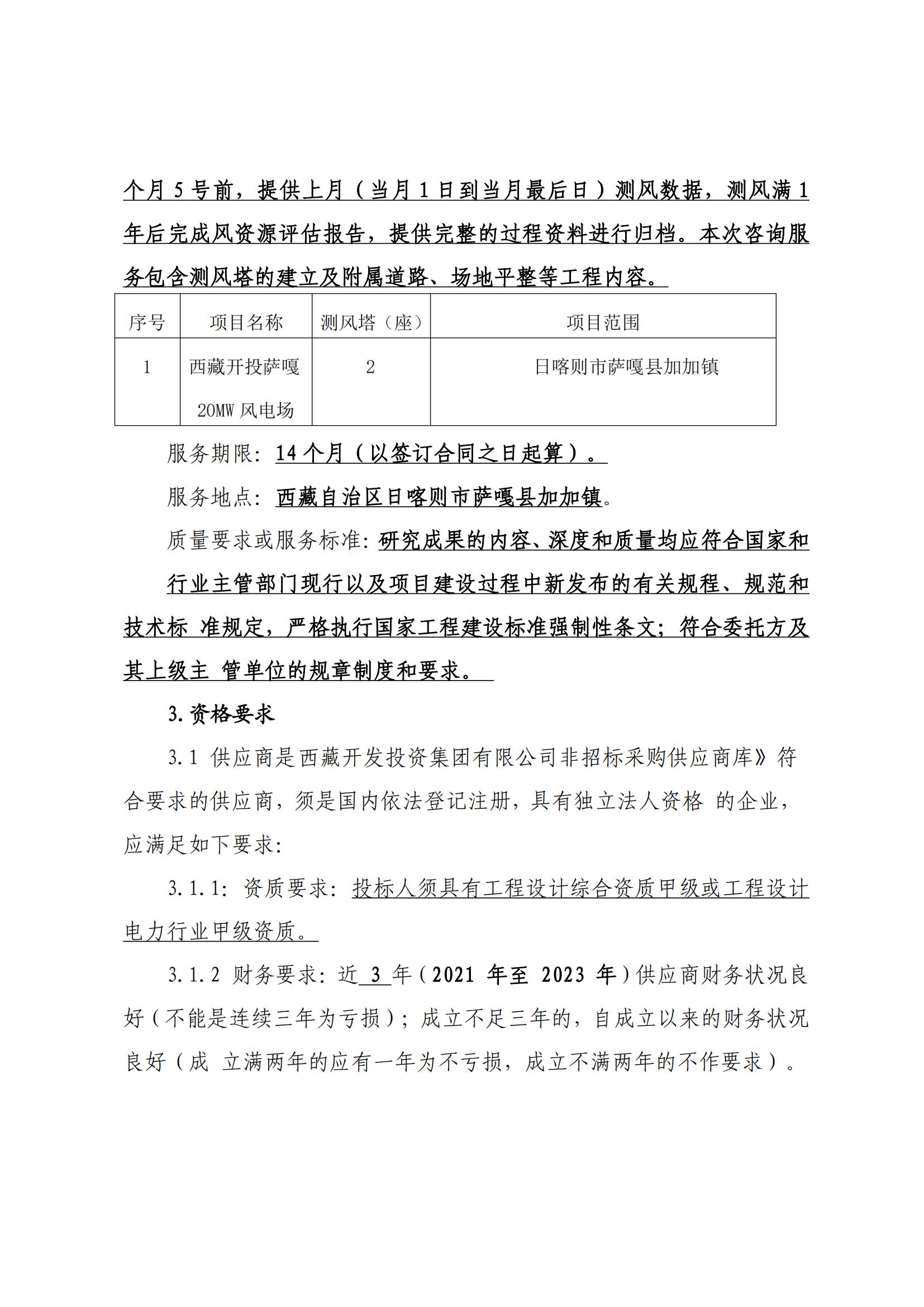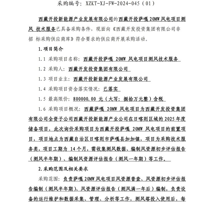 西藏開投薩嘎20ML風(fēng)電項目測風(fēng)技術(shù)服務(wù)詢價采購公告(第二次)