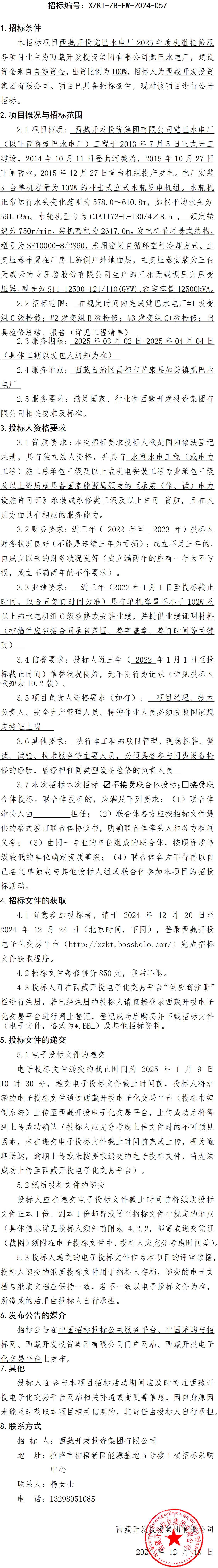 西藏開投覺巴水電廠 2025 年度機組檢修服務(wù)招標公告