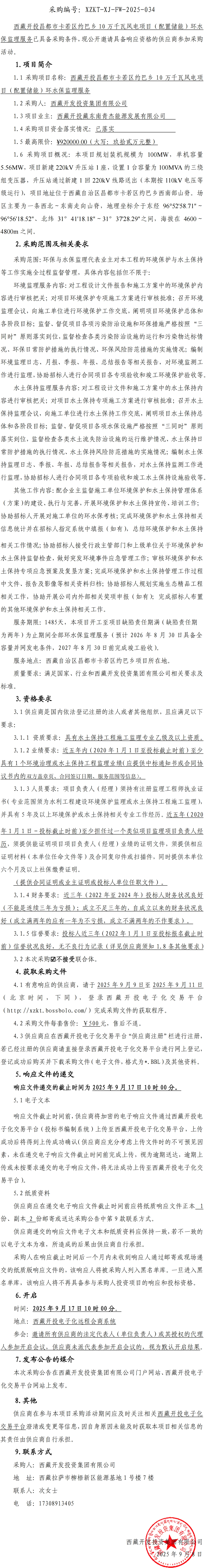 西藏開投昌都市卡若區(qū)約巴鄉(xiāng)10萬千瓦風(fēng)電項(xiàng)目(配置儲(chǔ)能)環(huán)水保監(jiān)理服務(wù)詢比采購(gòu)公告